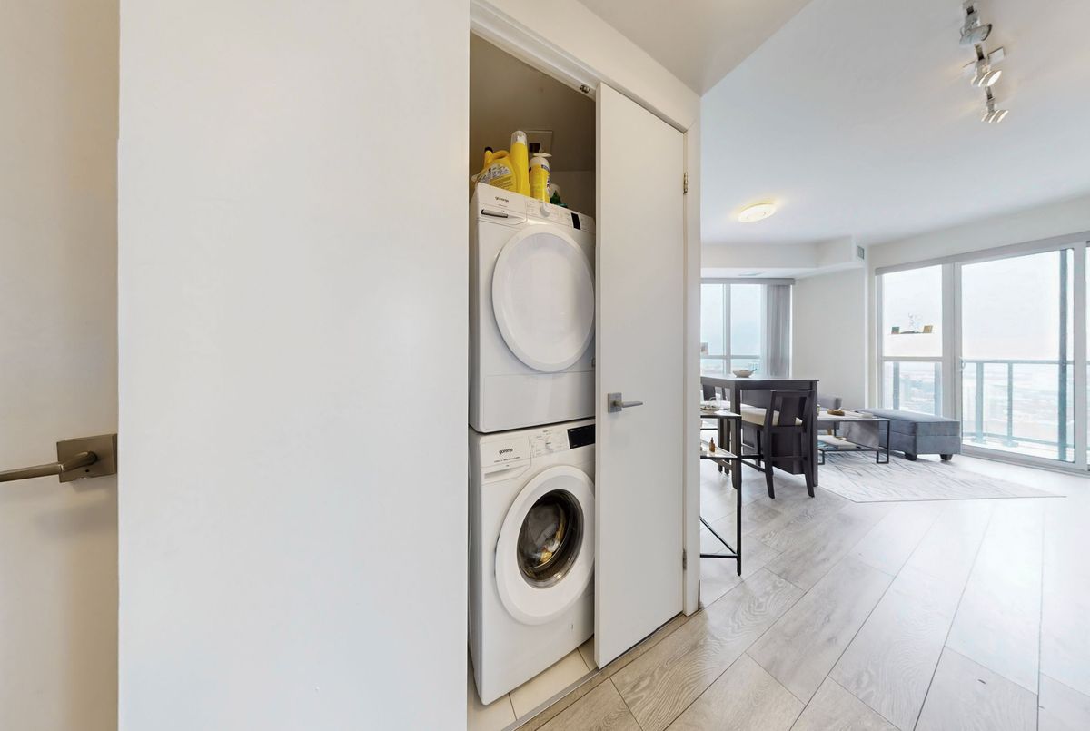 Welcome to this bright and stylish 1-bedroom corner suite in the heart of downtown Toronto. This beautifully designed unit features a wrap-around layout with large floor-to-ceiling windows, offering panoramic city views and an abundance of natural light throughout. The open-concept living and dining area creates a spacious and functional layout perfect for everyday living or entertaining.The generous bedroom offers great space and comfort, while the modern kitchen features sleek cabinetry, built-in appliances, and ample storage. Enjoy the convenience of in-suite laundry, contemporary finishes, and a thoughtfully designed floor plan that maximizes every square foot. Residents enjoy excellent building amenities including 24-hour concierge, fitness centre, yoga studio, party room, guest suites, and bike storage. Internet is included for added convenience. Located in vibrant Cabbagetown, just steps to transit, parks, restaurants, cafés, and everyday shopping. Walking distance to Toronto Metropolitan University, University of Toronto, and the CF Toronto Eaton Centre. Easy access to the subway and downtown core makes commuting effortless. Ideal for professionals or students looking to enjoy modern downtown living with everything at their doorstep.